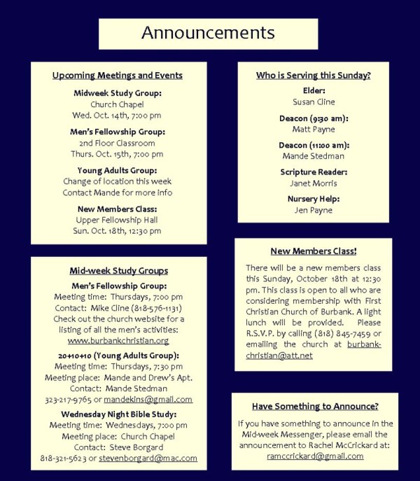 Mid-week Messenger (Oct. 14, 2009) 페이지 정보 작성자 목회팀 쪽지보내기 메일보내기 자기소개 아이디로 검색 전체게시물 쪽지보내기 메일보내기 자기소개 아이디로 검색 전체게시물 조회 9,480회 작성일 09-10-14 19:12 댓글 0 본문 이전글 Mid-Week Messenger (Dec. 2, 2009) 다음글8월 15일, 16일 안내 글쓰기 옵션 더보기 검색 목록 댓글목록 등록된 댓글이 없습니다.